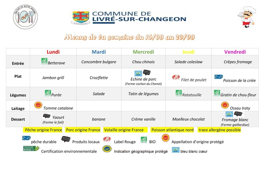 Les repas sont réalisés au Restaurant Scolaire de Livré-Sur-Changeon